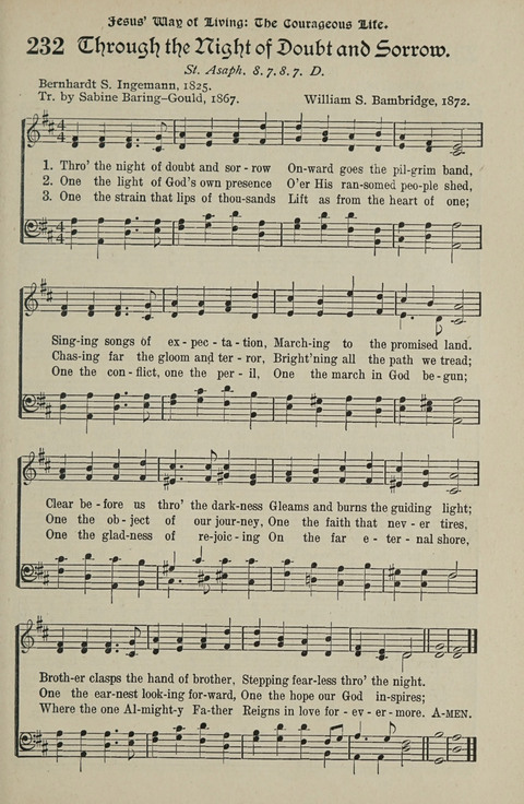 | Text: | Thro' the night of doubt and sorrow |