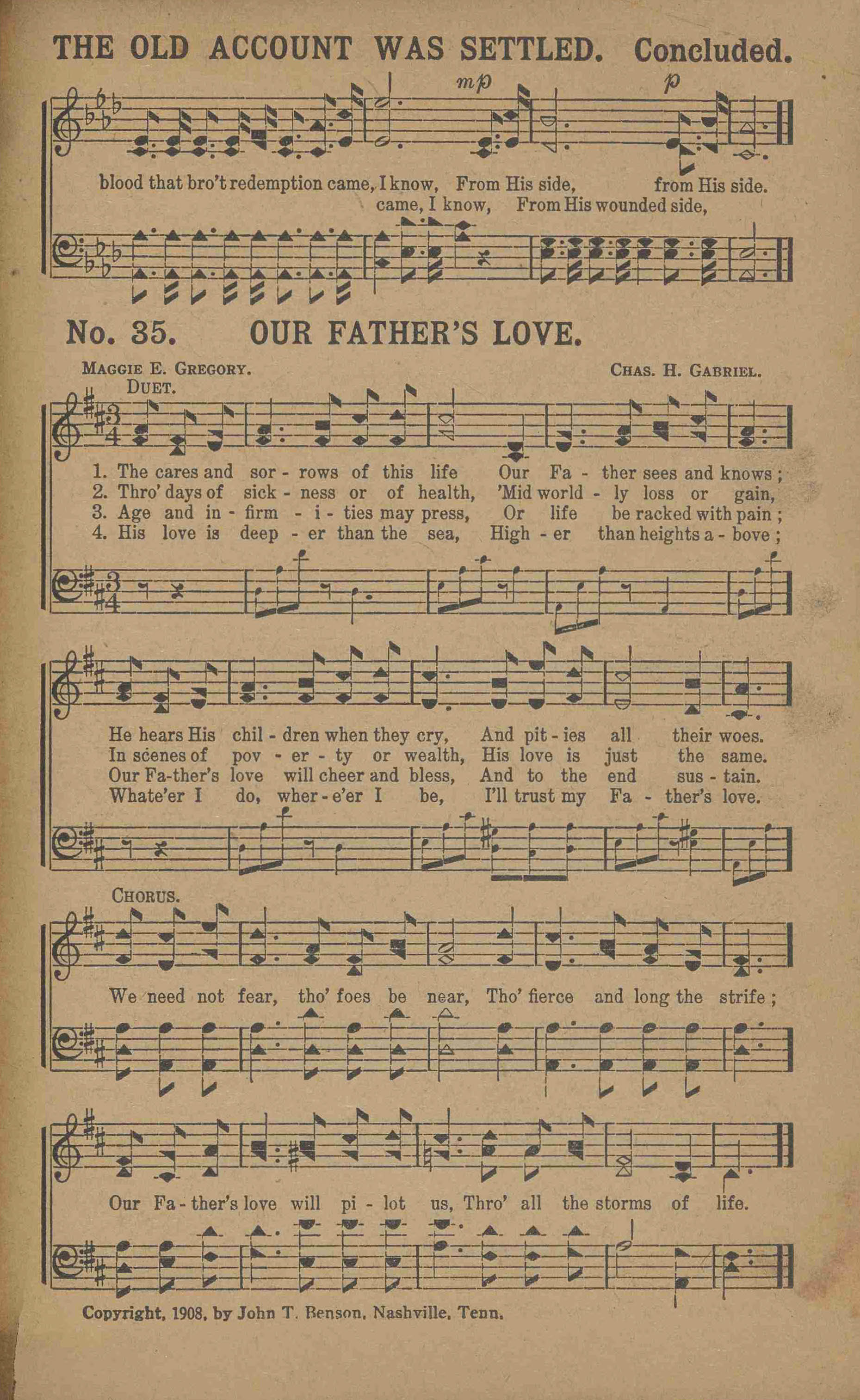 | Text: | Our Father's Love |