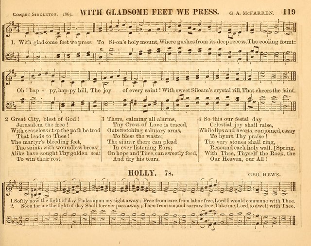 119a. With gladsome feet we press