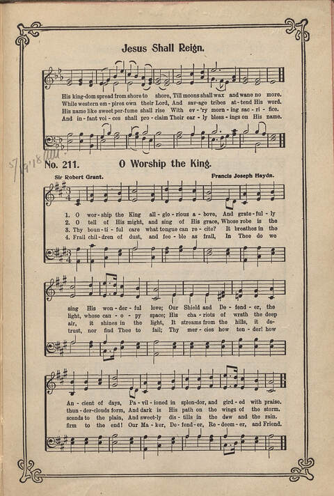 | Tune: | [O worship the King, all glorious above] |