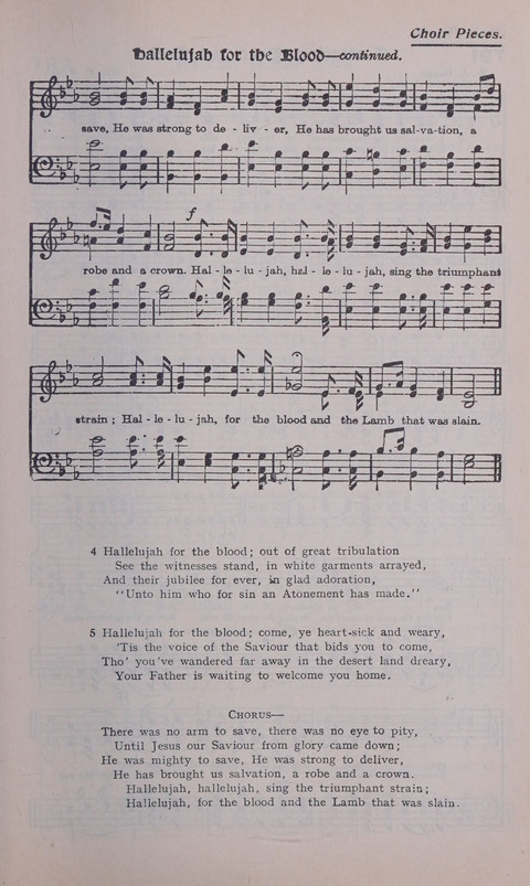 | First Line: | Hallelujah for the blood, for the sin-cleansing fountain |