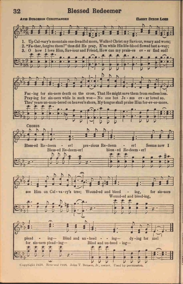 | Refrain First Line: | Blessed Redeemer! precious Redeemer! |