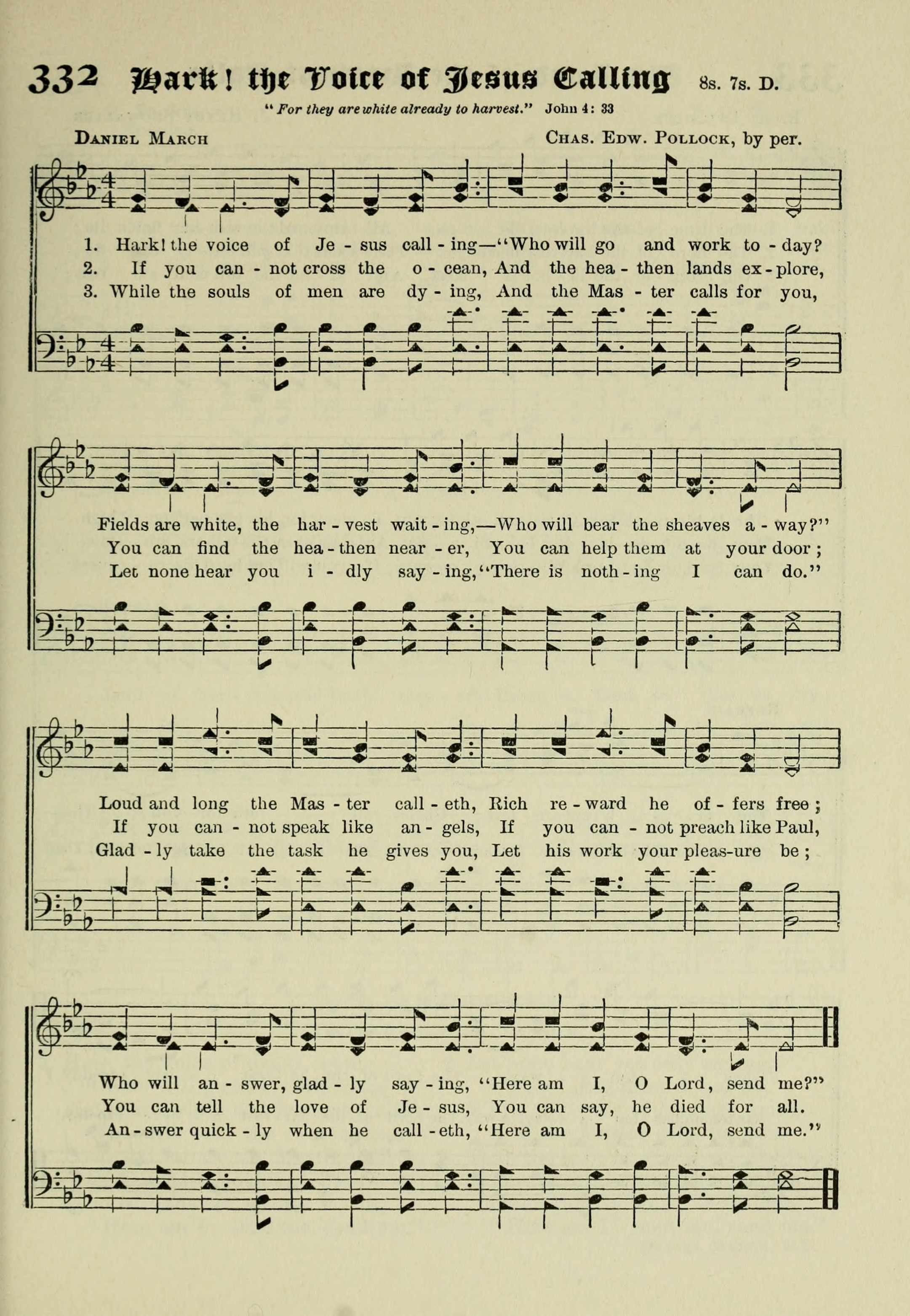 [Hark, the voice of Jesus crying]