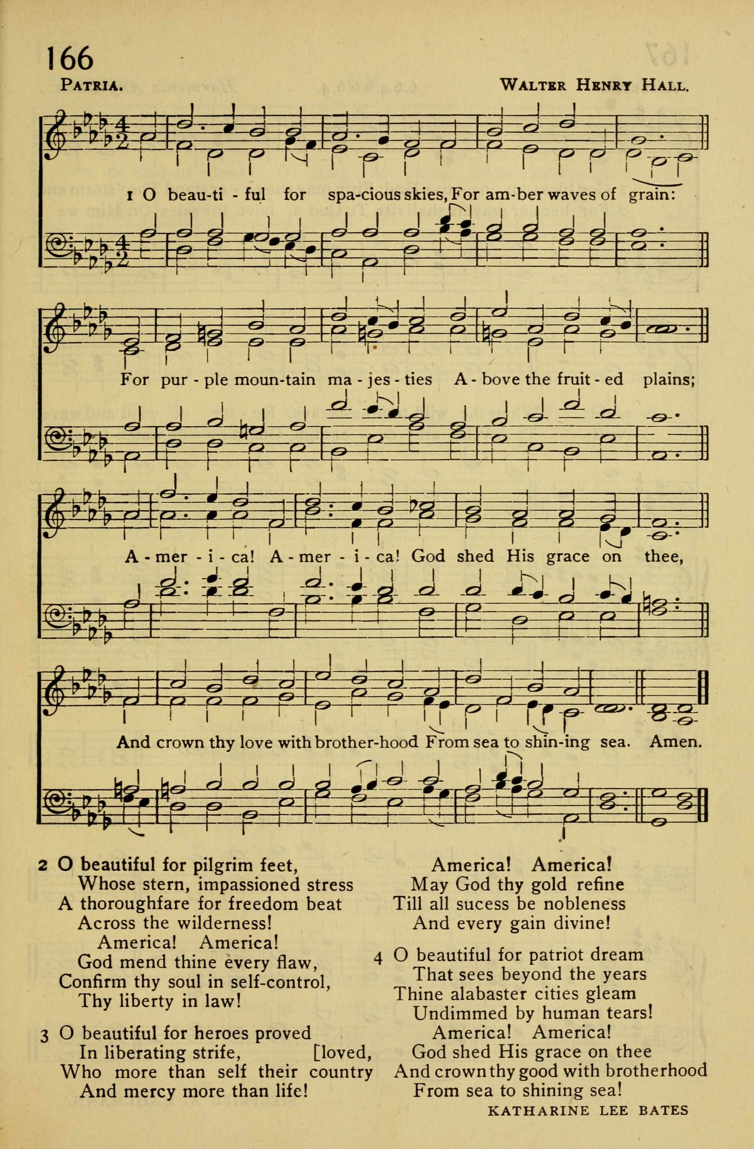 | Text: | O beautiful for spacious skies |