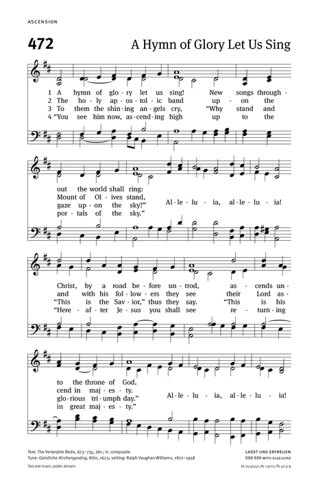 | Text: | A Hymn of Glory Let Us Sing |