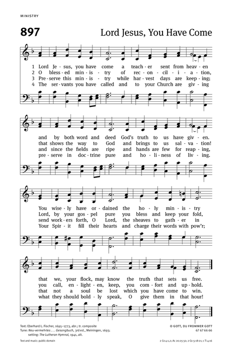 | Source: | Neu-vermehrtes...Gesangbuch, 3rd ed., Meiningen, 1693, alt.; Setting: The Lutheran Hymnal, 1941, alt. |