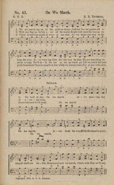 | Refrain First Line: | On we march ev'ry passing day |