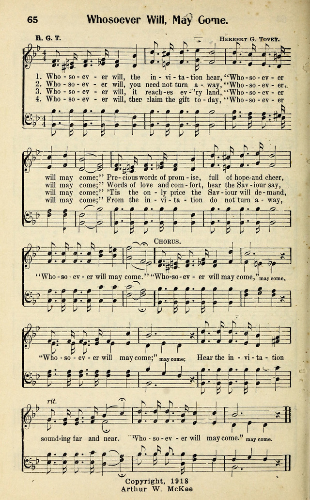 | Refrain First Line: | "Whosoever will may come" |