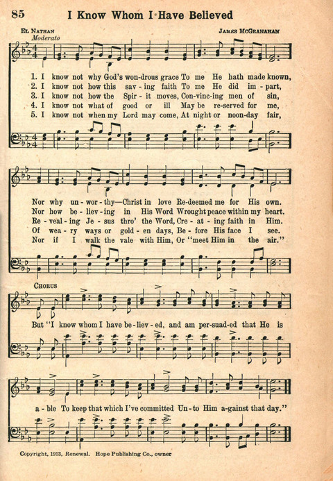 | Refrain First Line: | But I know Whom I have believed |