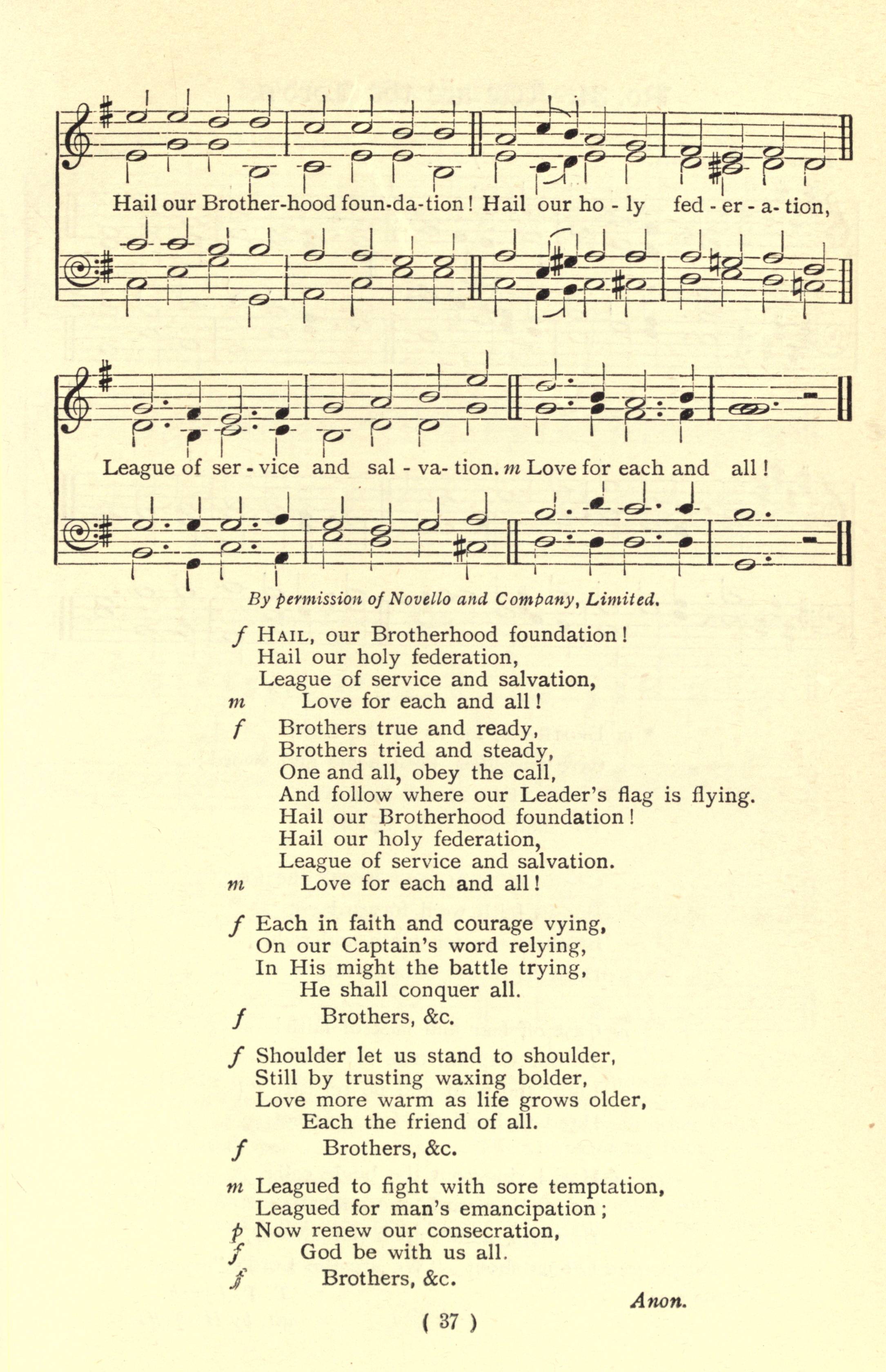 | Text: | Hail! Our Brotherhood Foundation |