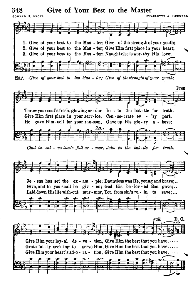 | Refrain First Line: | Give of your best to the Master |