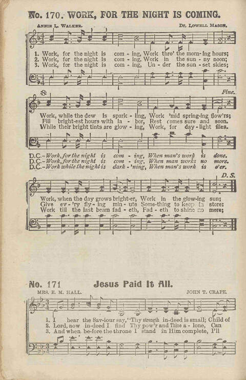 | First Line: | Work, for the night is coming |