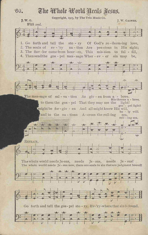 | Refrain First Line: | The whole world needs Jesus |