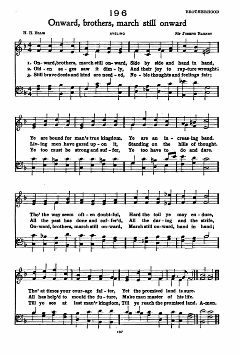 | Text: | Onward, brothers, march still onward |