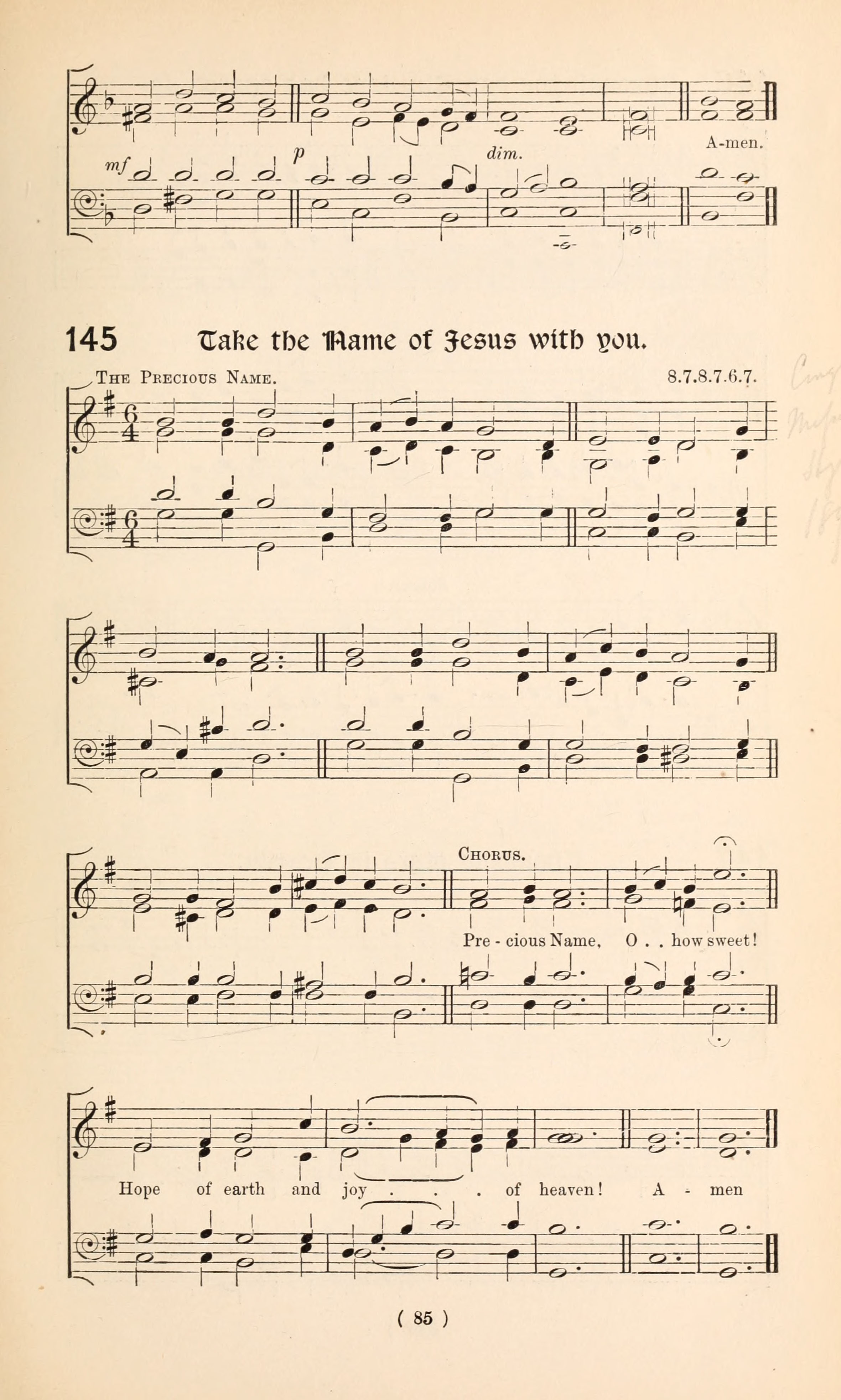 | Tune: | THE PRECIOUIS NAME |
