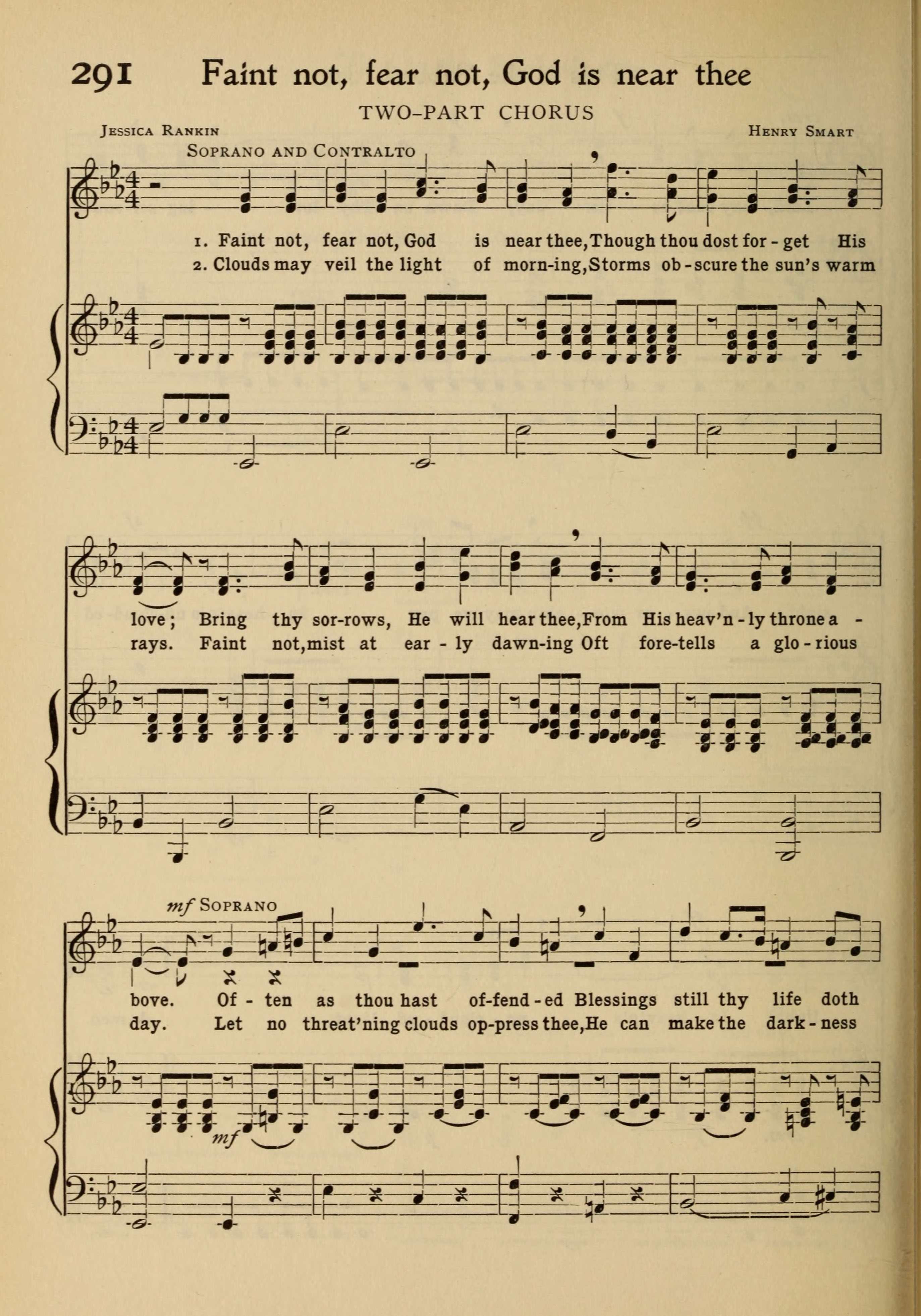 | Text: | Faint not, fear not, God is near thee |