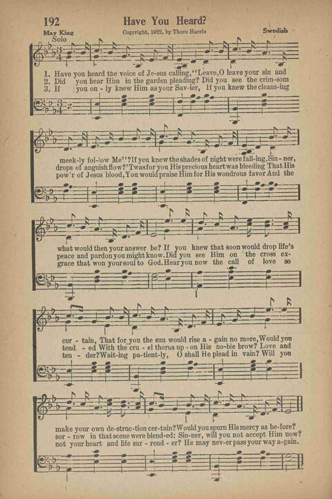 | Tune: | [Have you heard the voice of Jesus calling] |