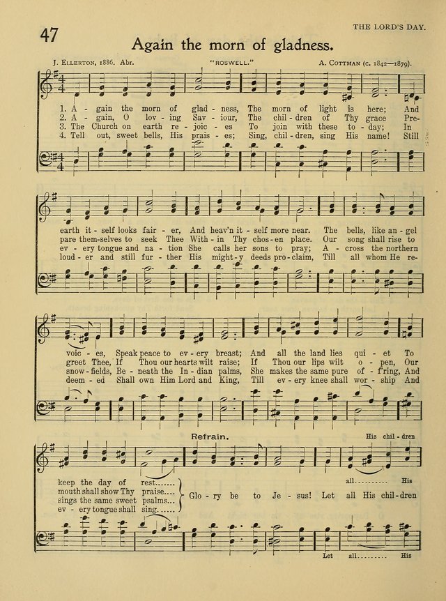 | Text: | Again the morn of gladness |