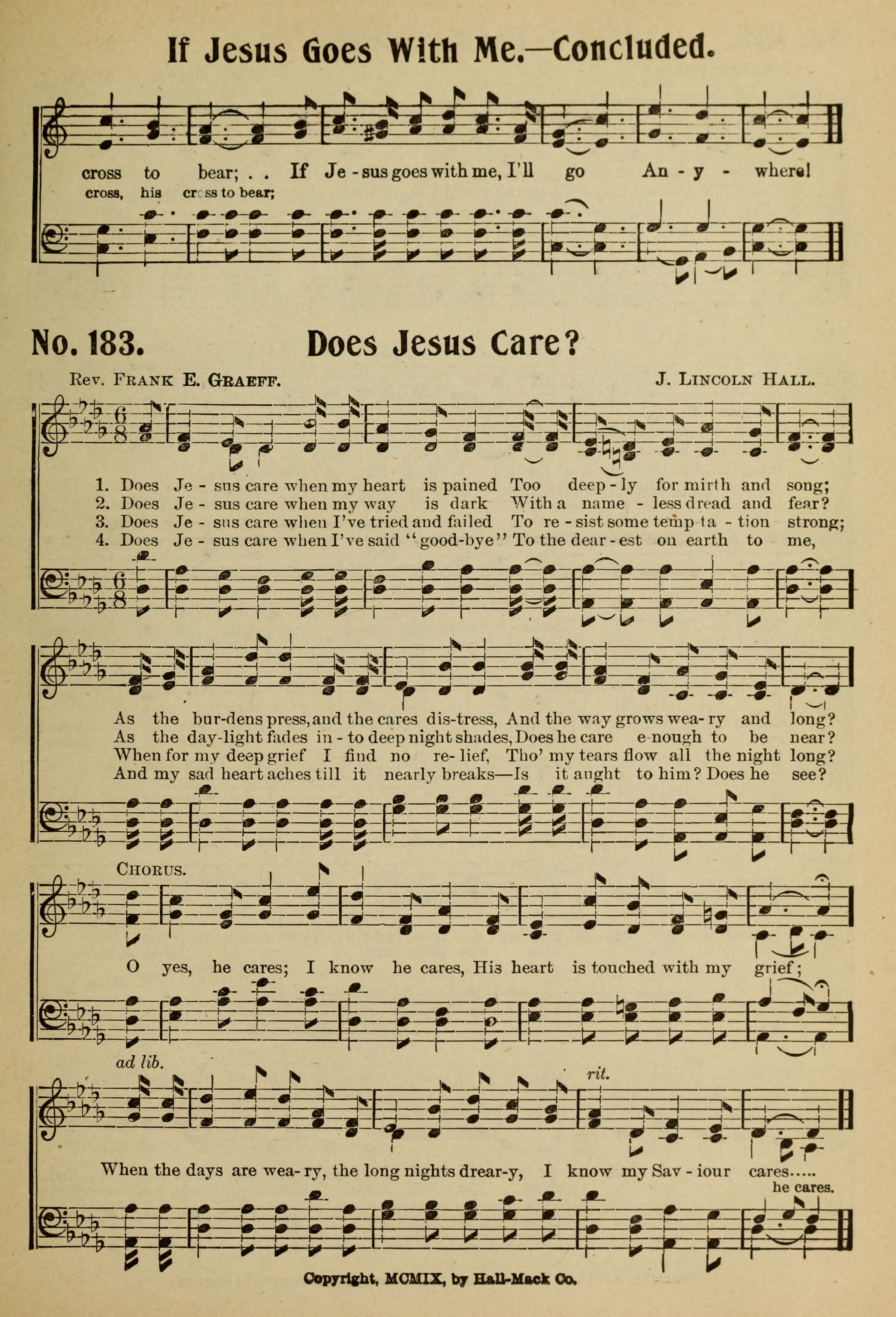 | Tune: | [Does Jesus care when my heart is pained] |