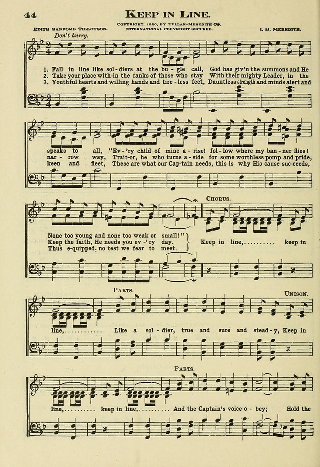 | Tune: | [Fall in line like soldiers at the bugle call] |