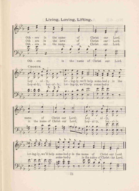 | First Line: | Living, loving, lifting in the service of the Lord |