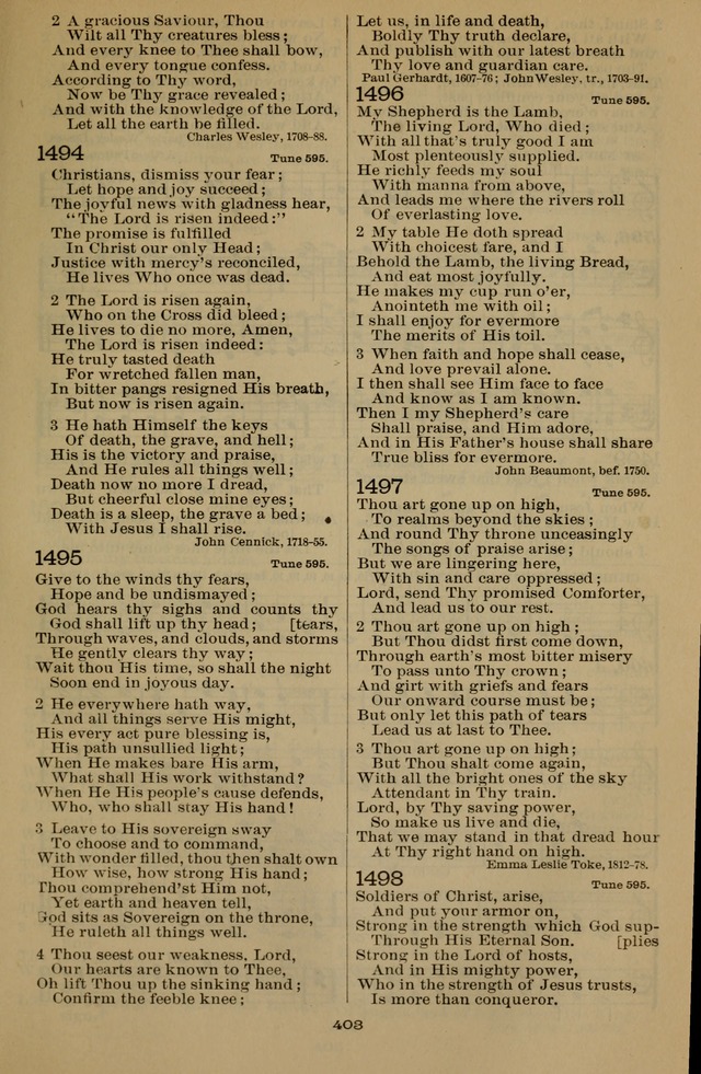 | 1497 | The Liturgy and the Offices of Worship and Hymns of the American Province of the Unitas Fratrum, or the Moravian Church#1498 | 1499 |