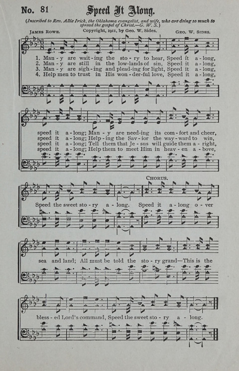 | Refrain First Line: | Speed it along over sea and land |