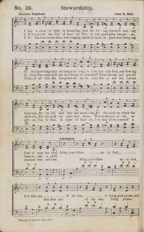 | Refrain First Line: | Bring your tithes unto God |