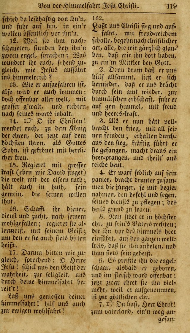 | 161 | Neueingerichtetes Gesang-Buch, enthaltend eine Sammlung (mehrentheils alter) erbaulicher Lieder, nach den Hauptstücken der christlichen Lehre und Glaubens eingetheilet#162 | 163 |
