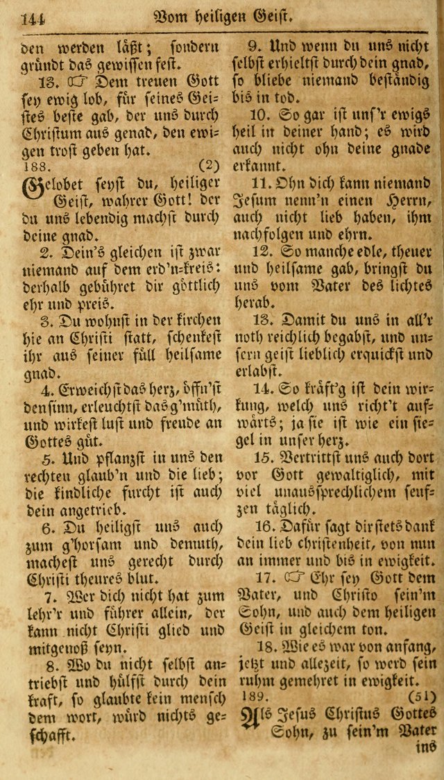 | 188 | Neueingerichtetes Gesang-Buch, enthaltend eine Sammlung (mehrentheils alter) erbaulicher Lieder, nach den Hauptstücken der christlichen Lehre und Glaubens eingetheilet#189 | 190 |