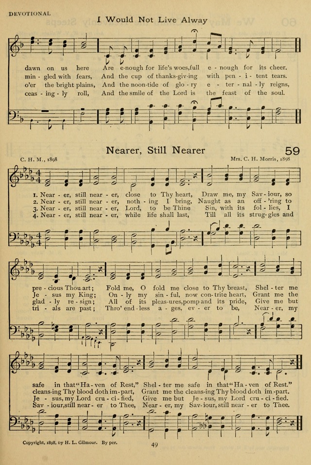 | Tune: | [Nearer, still nearer, close to thy heart] |