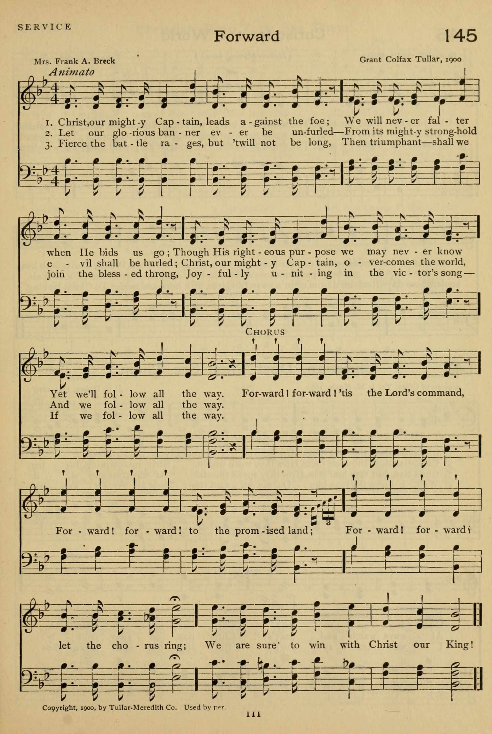 | Tune: | [Christ, our mighty Captain, leads against the foe] |