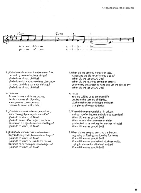 | Refrain First Line: | Tu nos llamas a abrir los brazos (You are calling us to embrace life) |
