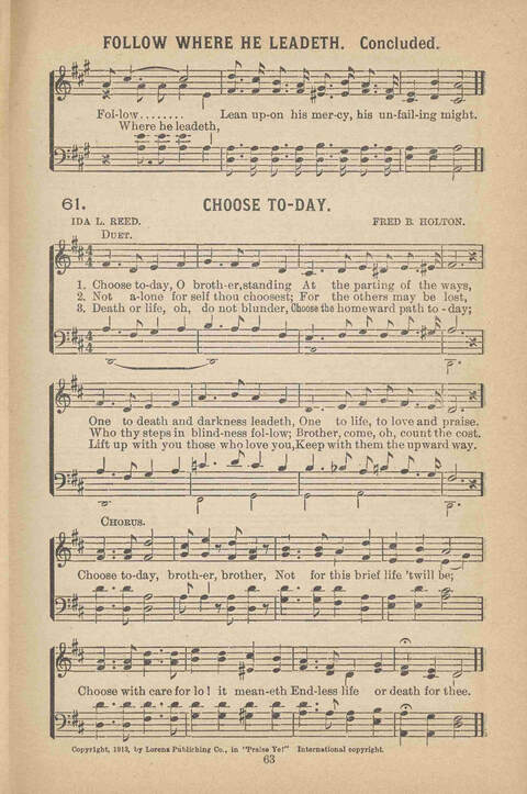 | Refrain First Line: | Choose today, brother, brother |