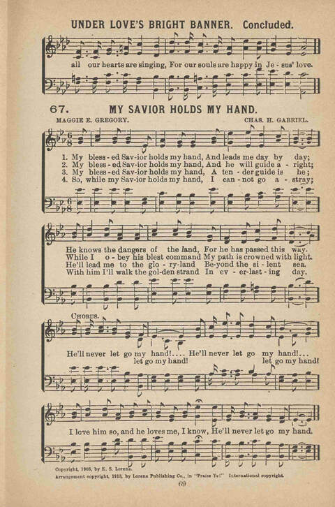 | Tune: | [Under love's bright banner, marching on to glory] |