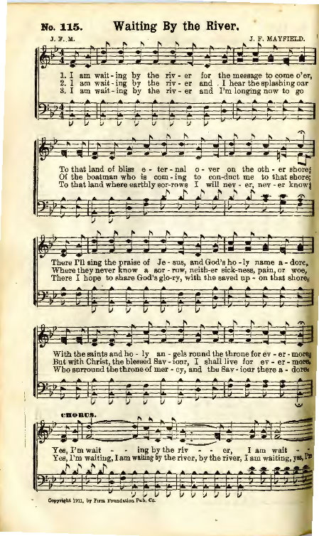 [I am waiting by the river for the message to come o'er]