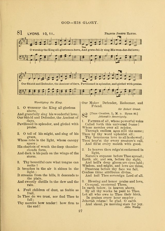 | Text: | O worship the King all-glorious above |
