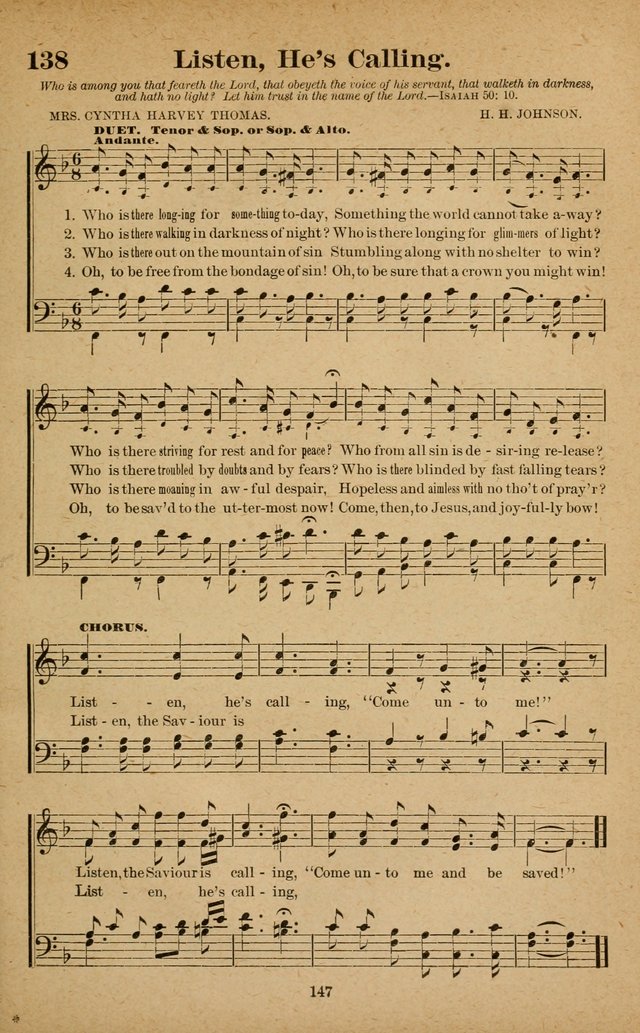 | Refrain First Line: | Listen, he's calling, "Come unto me!" |