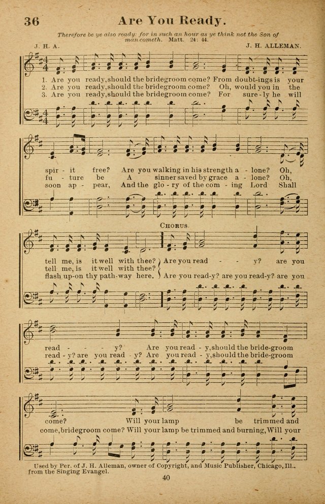 | Tune: | [Are you ready, should the bridegroom come?] |