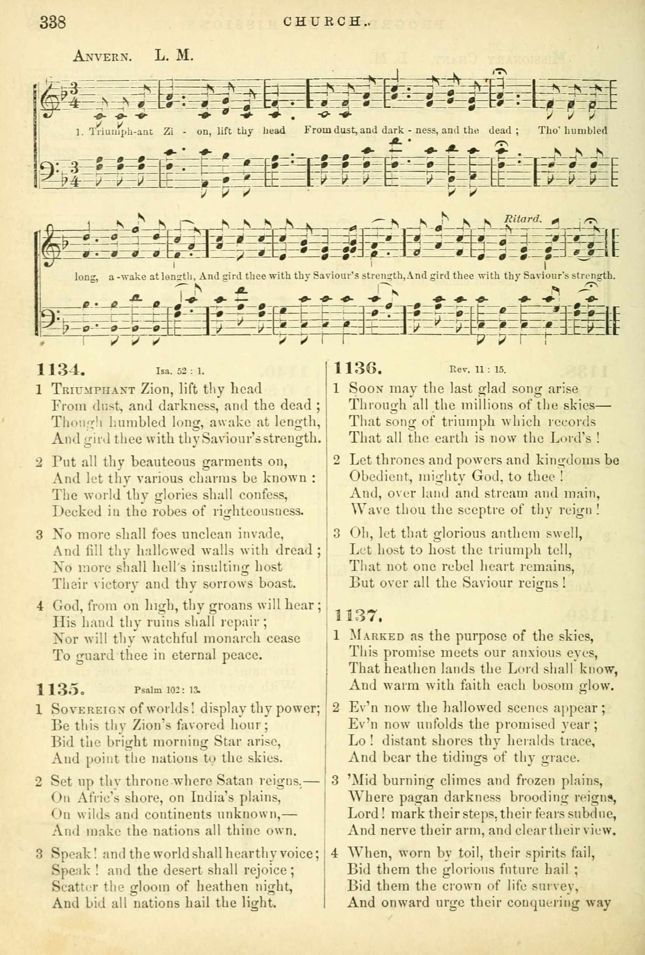 | Text: | Triumphant Zion, lift thy head |