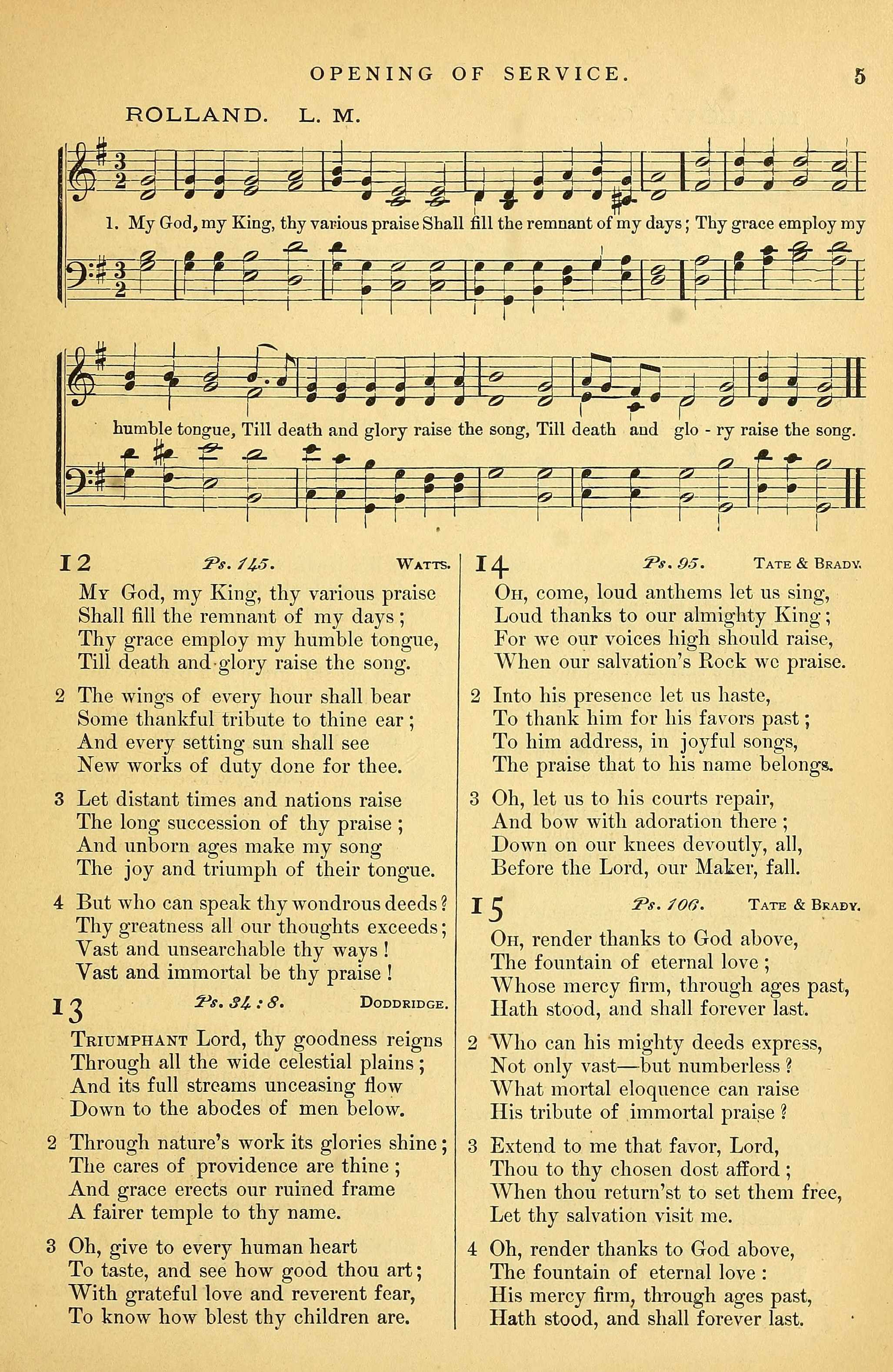 | Text: | My God, my King, thy various praise |