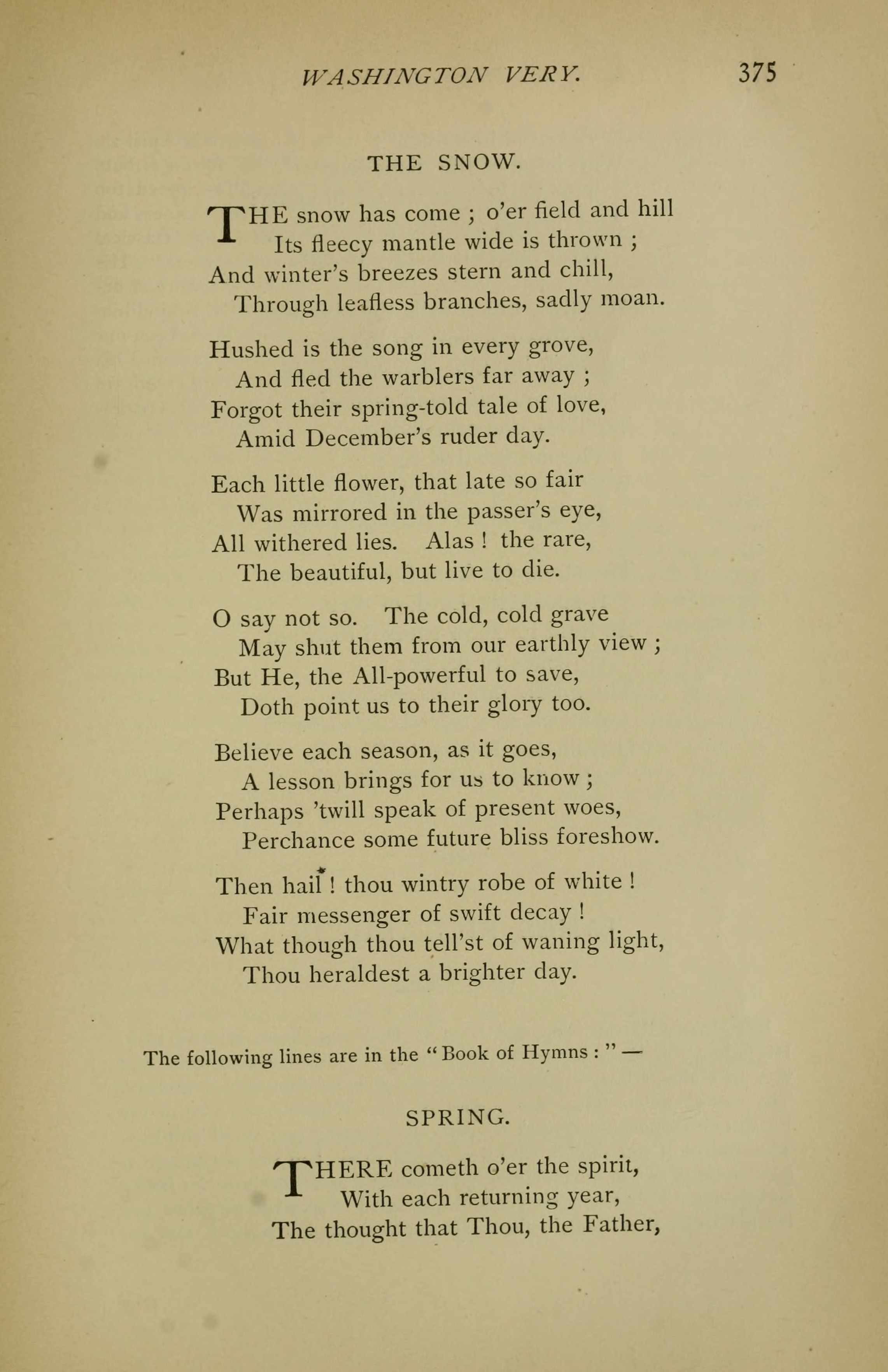 | Text: | The snow has come o'er field and hill |