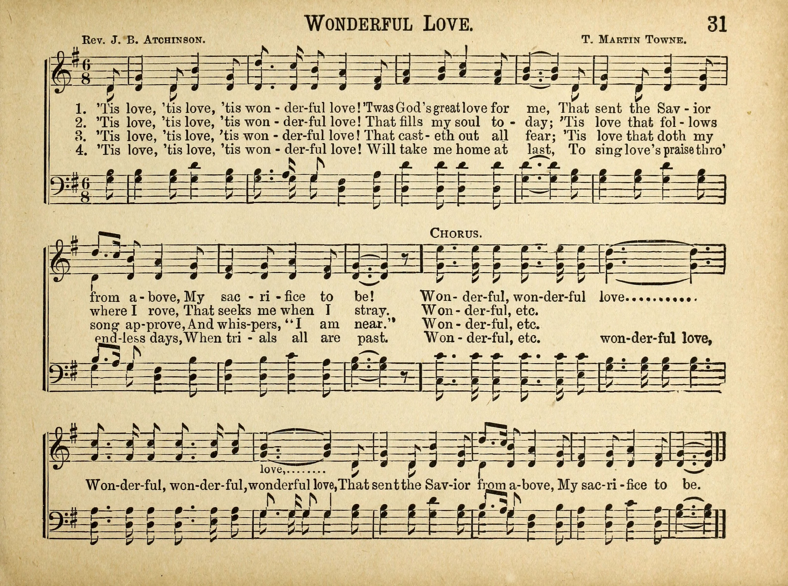 ['Tis love, 'tis love, 'tis wonderful love]