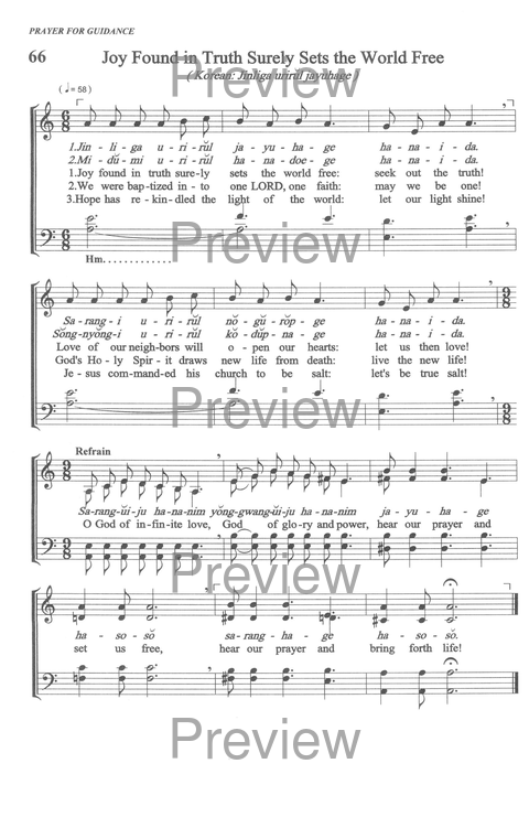 | Text: | Joy Found in Truth Surely Sets the World Free (Jinliga urirŭl jayuhage) |