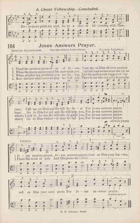 | Refrain First Line: | Jesus answers prayer, Jesus answers prayer |