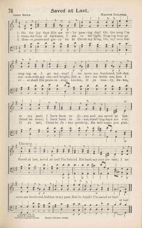 | Refrain First Line: | Saved at last, saved at last! |