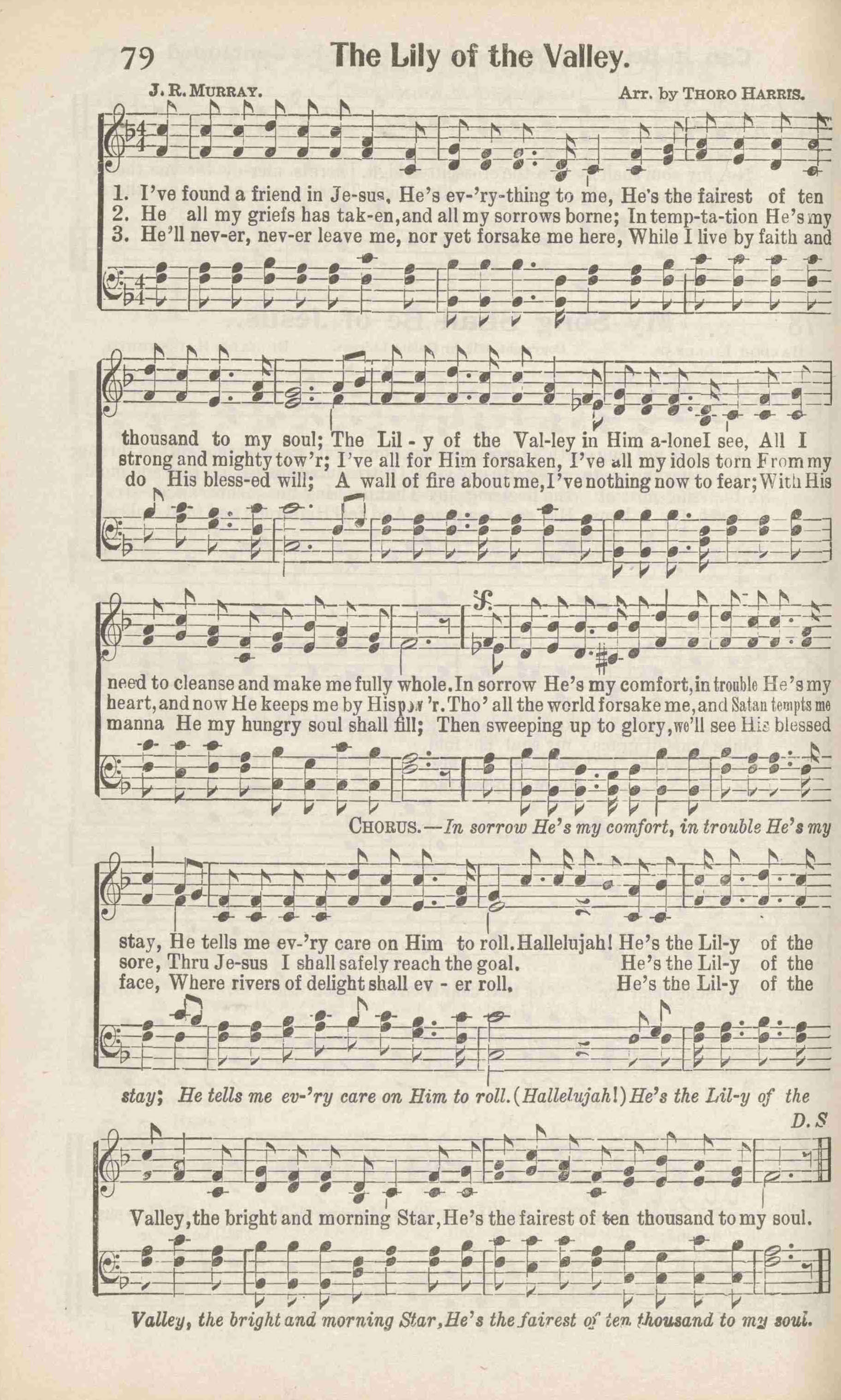 [I have found a friend in Jesus, He's ev'rything to me]