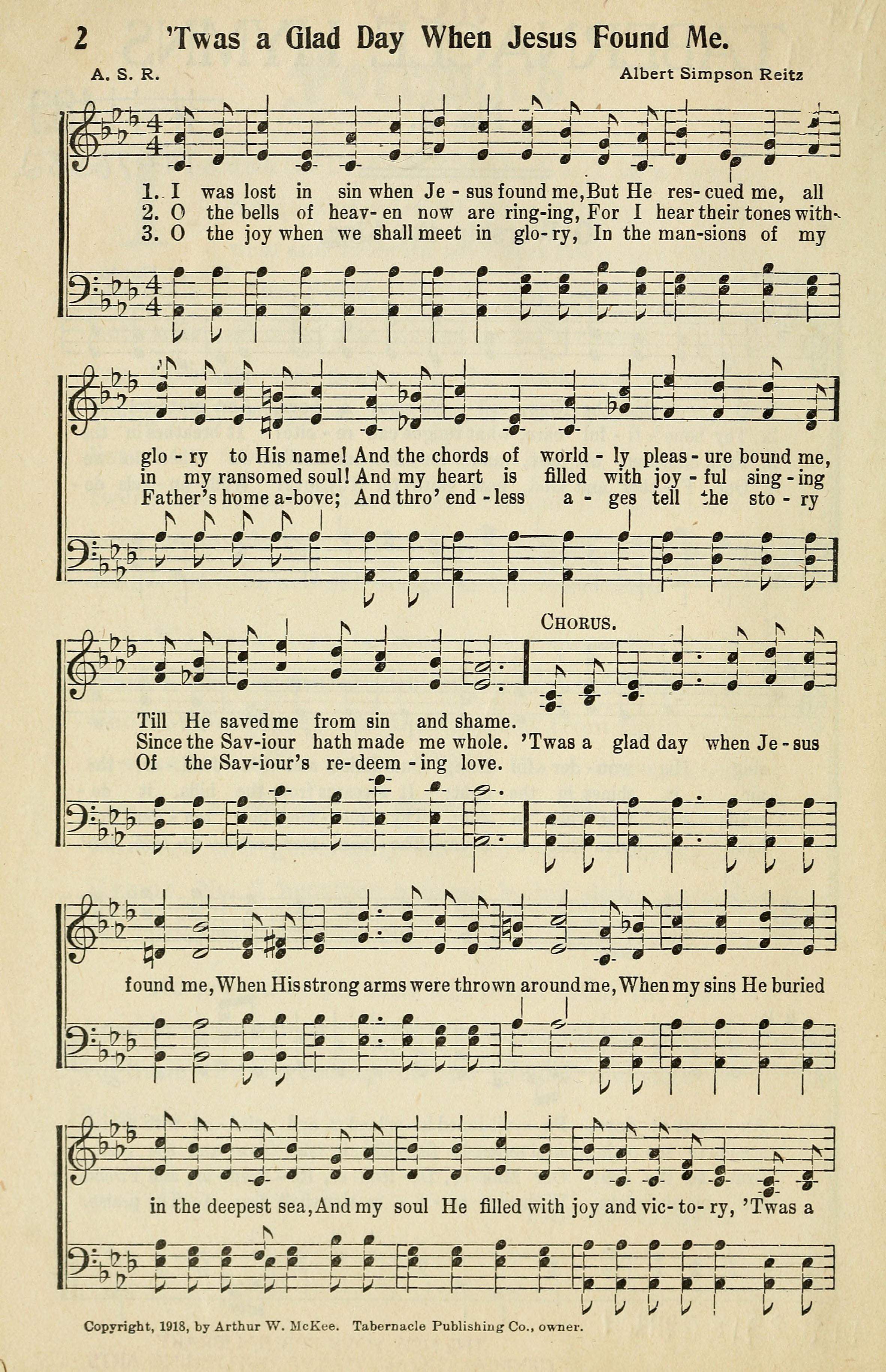 'Twas a Glad Day When Jesus Found Me