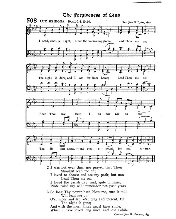 | Text: | Lead, kindly light, amid the encircling gloom |
