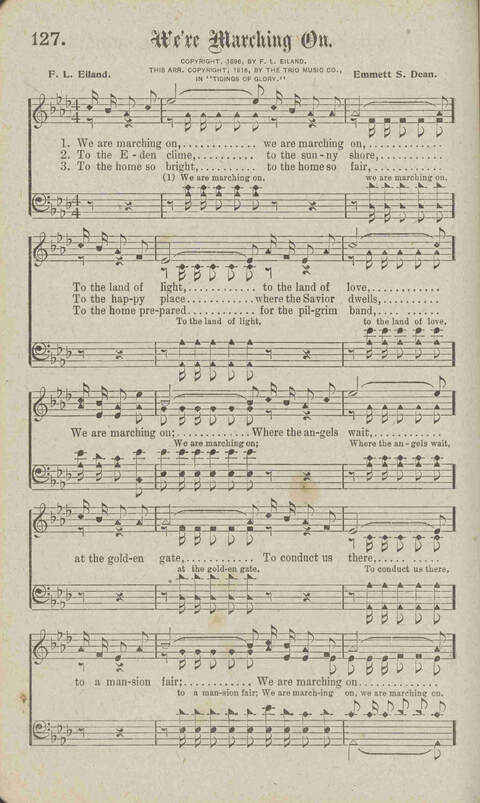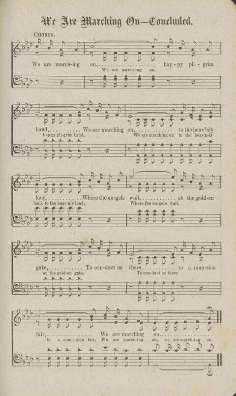 | Refrain First Line: | We are marching on, happy pilgrim band |